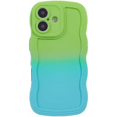 Coque arrière en silicone Phonesta Wavy Gradient pour Apple iPhone 16 Plus - Vert/Bleu