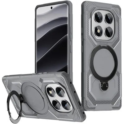 Coque arrière Phonesta IronLock anneau et MagSafe pour Xiaomi Redmi Note 14 Pro 4G/5G/14 Pro Plus / Xiaomi Poco X7 - Gris