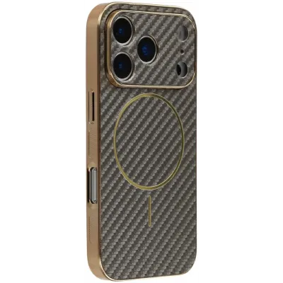 • Coque arrière Phonesta Luxury Carbon Fiber avec MagSafe pour Apple iPhone 17 Pro Max - Marron