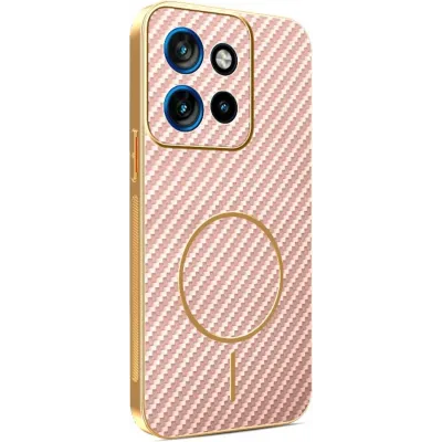 • Coque arrière Phonesta Luxury Carbon Fiber avec MagSafe pour Motorola Edge 60 Neo/Edge 50 Neo / ThinkPhone 25 - Rose