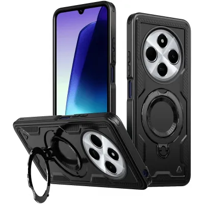 Coques de téléphoneCoques pour XiaomiCoques Xiaomi Poco C75Coque arrière Phonesta MagLock Armor anneau et MagSafe pour Xiaomi Redmi 14C / Xiaomi Poco C75 - Noir