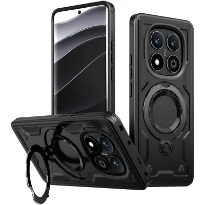 Coque arrière Phonesta MagLock Armor anneau et MagSafe pour Xiaomi Redmi Note 14 Pro 4G/5G/14 Pro Plus / Xiaomi Poco X7 - Noir