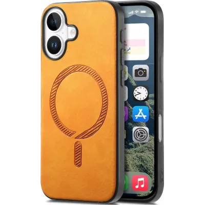 Coque arrière Phonesta Retro Vegan Leather MagSafe pour Apple iPhone 16 - Orange