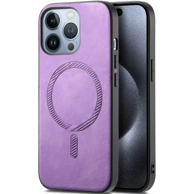 Coque arrière Phonesta Retro Vegan Leather MagSafe pour Apple iPhone 16 Pro - Violet