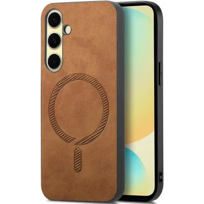 Coque arrière Phonesta Retro Vegan Leather MagSafe pour Samsung Galaxy A36/A56 - Marron