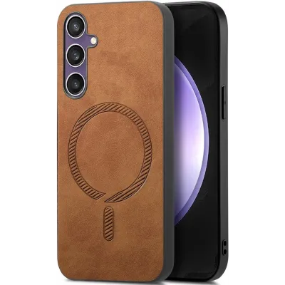 Coque arrière Phonesta Retro Vegan Leather MagSafe pour Samsung Galaxy S24 FE - Marron