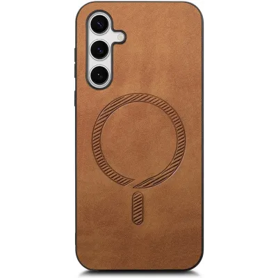 Coque arrière Phonesta Retro Vegan Leather MagSafe pour Samsung Galaxy S25 Plus/S24 Plus - Marron