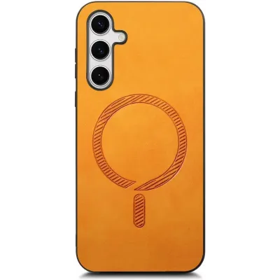 Coque arrière Phonesta Retro Vegan Leather MagSafe pour Samsung Galaxy S25 Plus/S24 Plus - Orange