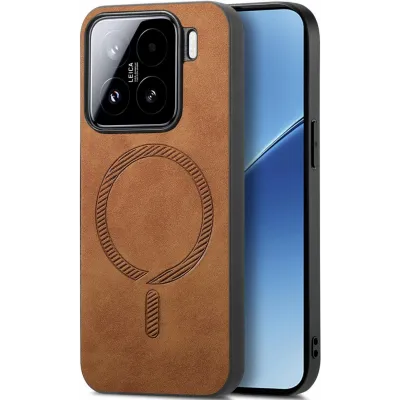 Coque arrière Phonesta Retro Vegan Leather MagSafe pour Xiaomi 15 - Marron
