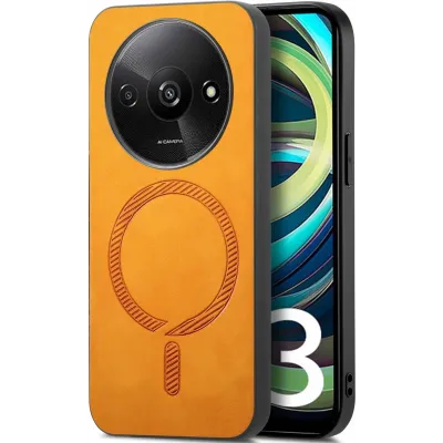 Coque arrière Phonesta Retro Vegan Leather MagSafe pour Xiaomi Redmi A3 - Orange
