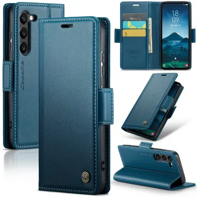 • Coque portefeuille CASEME Litchi Texture pour Samsung Galaxy S25 - Bleu