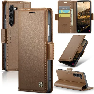 • Coque portefeuille CASEME Litchi Texture pour Samsung Galaxy S25 - Marron