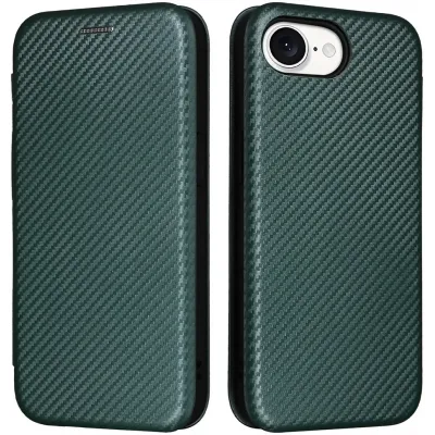 Coques de téléphoneCoques pour Apple iPhoneCoques Apple iPhone 17eCoque portefeuille Phonesta Carbon Fiber Skin pour Apple iPhone 17e/16e - Vert foncé