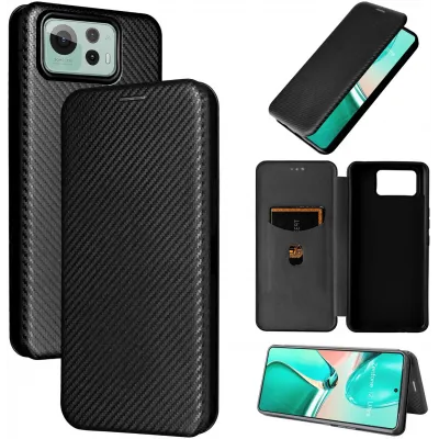 Coque portefeuille Phonesta Carbon Fiber Skin pour Asus Zenfone 12 Ultra - Noir