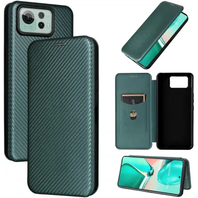 Coque portefeuille Phonesta Carbon Fiber Skin pour Asus Zenfone 12 Ultra - Vert foncé