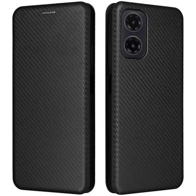 Coque portefeuille Phonesta Carbon Fiber Skin pour Motorola Moto G35 - Noir