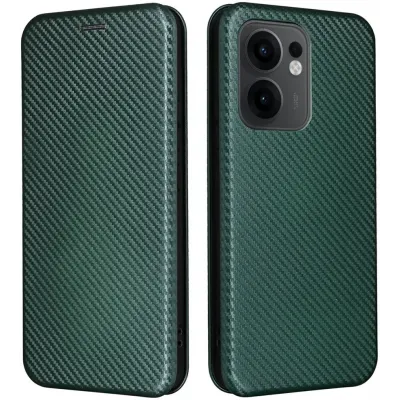 • Coque portefeuille Phonesta Carbon Fiber Skin pour Oppo Reno13 F 4G/5G / Reno13 FS 5G - Vert foncé