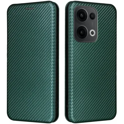 Coque portefeuille Phonesta Carbon Fiber Skin pour Oppo Reno13 - Vert foncé