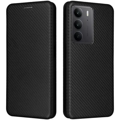 • Coque portefeuille Phonesta Carbon Fiber Skin pour Realme 14x / C75 - Noir