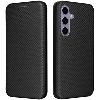 Coque portefeuille Phonesta Carbon Fiber Skin pour Samsung Galaxy S25 - Noir