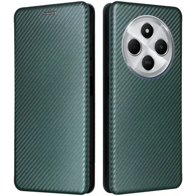 • Coque portefeuille Phonesta Carbon Fiber Skin pour Xiaomi Redmi 14C / Xiaomi Poco C75 - Vert foncé