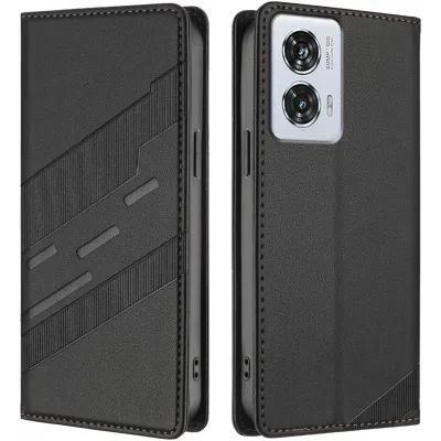 • Coque portefeuille Phonesta Embossed Lines pour Motorola Edge 50 Fusion - Noir