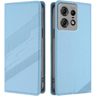 Coque portefeuille Phonesta Embossed Lines pour Motorola Edge 50 Pro - Bleu clair