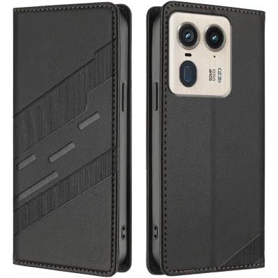 • Coque portefeuille Phonesta Embossed Lines pour Motorola Edge 50 Ultra - Noir