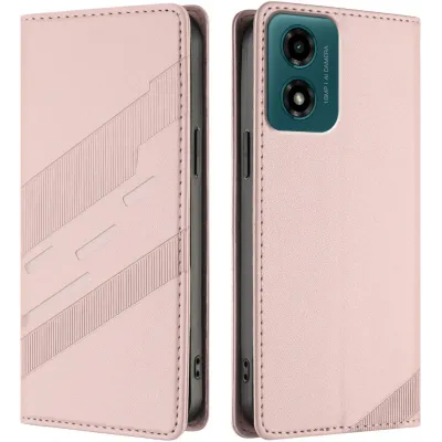 Coque portefeuille Phonesta Embossed Lines pour Motorola Moto G04 / G04s / G24 / G24 Power / E14 - Rose