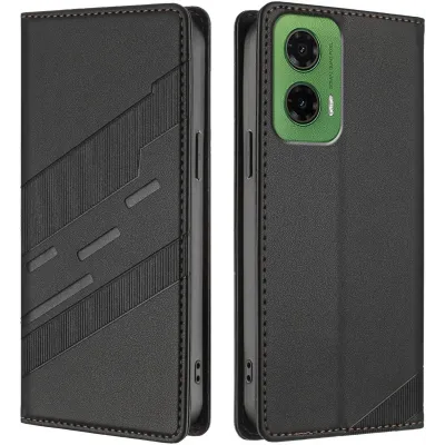 Coque portefeuille Phonesta Embossed Lines pour Motorola Moto G35 - Noir