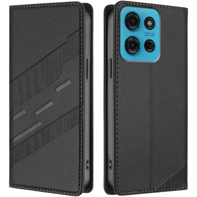 Coques de téléphoneCoques pour MotorolaCoques Motorola Moto G75Coque portefeuille Phonesta Embossed Lines pour Motorola Moto G75 - Noir