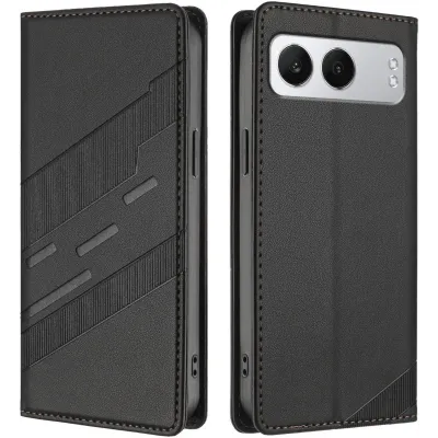 Coque portefeuille Phonesta Embossed Lines pour OnePlus Nord 4 - Noir