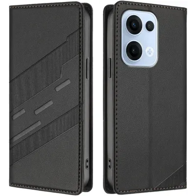 Coques de téléphoneCoques pour OppoCoques Oppo Reno13Coque portefeuille Phonesta Embossed Lines pour Oppo Reno13 - Noir
