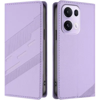 Coque portefeuille Phonesta Embossed Lines pour Oppo Reno13 Pro - Violet