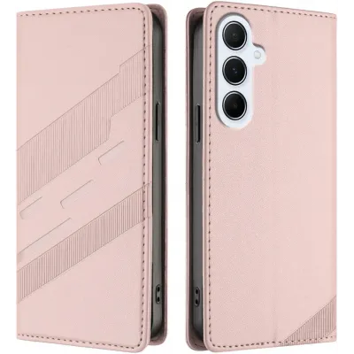 Coque portefeuille Phonesta Embossed Lines pour Samsung Galaxy A56 - Rose