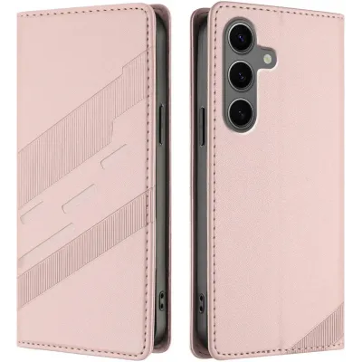 • Coque portefeuille Phonesta Embossed Lines pour Samsung Galaxy S25 Plus - Rose