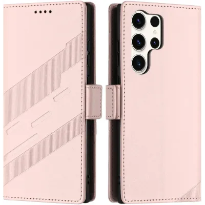 Coque portefeuille Phonesta Embossed Lines pour Samsung Galaxy S25 Ultra - Rose