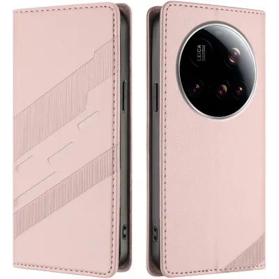 • Coque portefeuille Phonesta Embossed Lines pour Xiaomi 15 Ultra - Rose