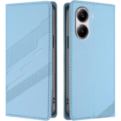 • Coque portefeuille Phonesta Embossed Lines pour Xiaomi Poco X7 Pro - Bleu clair