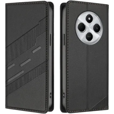 Coques de téléphoneCoques pour XiaomiCoques Xiaomi Poco C75Coque portefeuille Phonesta Embossed Lines pour Xiaomi Redmi 14C / Xiaomi Poco C75 - Noir