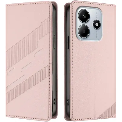 Coque portefeuille Phonesta Embossed Lines pour Xiaomi Redmi Note 14 5G - Rose