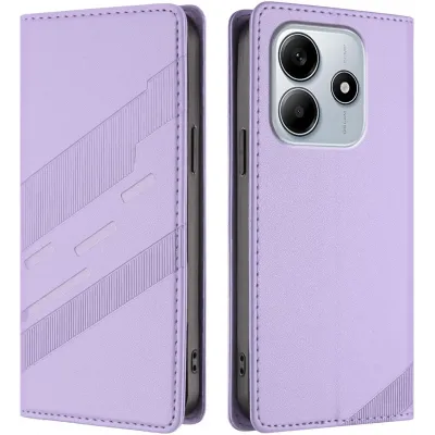Coque portefeuille Phonesta Embossed Lines pour Xiaomi Redmi Note 14 5G - Violet