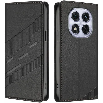 Coques de téléphoneCoques pour XiaomiCoques Xiaomi Redmi Note 14 Pro 4GCoque portefeuille Phonesta Embossed Lines pour Xiaomi Redmi Note 14 Pro 4G - Noir