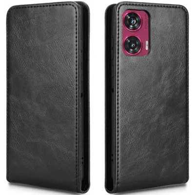 • Coque portefeuille Phonesta Leather Vertical Flip pour Motorola Edge 50 Fusion - Noir