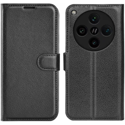 • Coque portefeuille Phonesta Litchi Skin pour Oppo Find X8 Pro - Noir