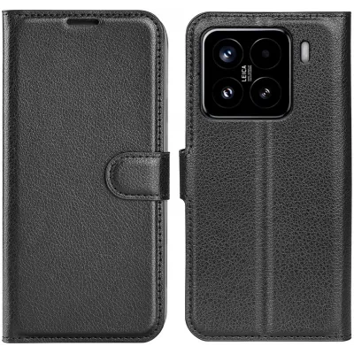 Coque portefeuille Phonesta Litchi Skin pour Xiaomi 15 - Noir