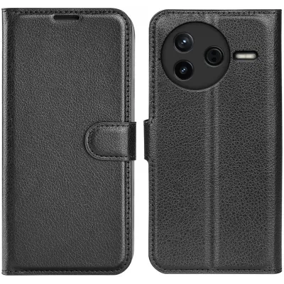• Coque portefeuille Phonesta Litchi Skin pour Xiaomi Poco F7 Pro - Noir