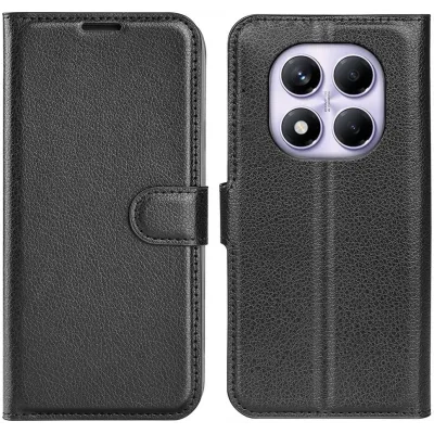 Coque portefeuille Phonesta Litchi Skin pour Xiaomi Redmi Note 14 Pro 4G - Noir