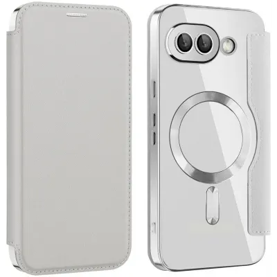 Coque portefeuille Phonesta Luxury Crystal avec MagSafe pour Google Pixel 9a - Argent