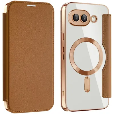 Coque portefeuille Phonesta Luxury Crystal avec MagSafe pour Google Pixel 9a - Marron